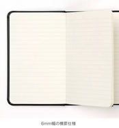 高級感のあるPU素材を使用した6mm幅の罫線ノートです。罫線の色味や幅にもこだわっており、長時間使用しても目が疲れにくい仕様になっています。